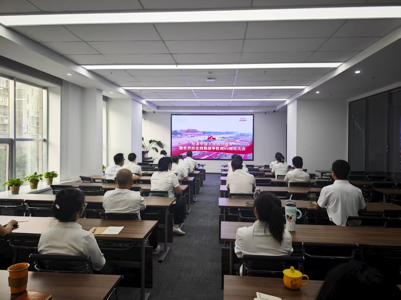 9月3日上午9時,甘肅建投培訓(xùn)中心有限公司組織全體職工觀看了紀(jì)念中國人民抗日戰(zhàn)爭暨世界反法西斯戰(zhàn)爭勝利80周年大會,共同見證了這一具有重大歷史意義的時刻。 上午9時,大會在北京天安門廣場隆重舉行,中共中央總書記、國家主席、中央軍委主席習(xí)近平發(fā)表重要講話并檢閱部隊。職工們聚精會神...
